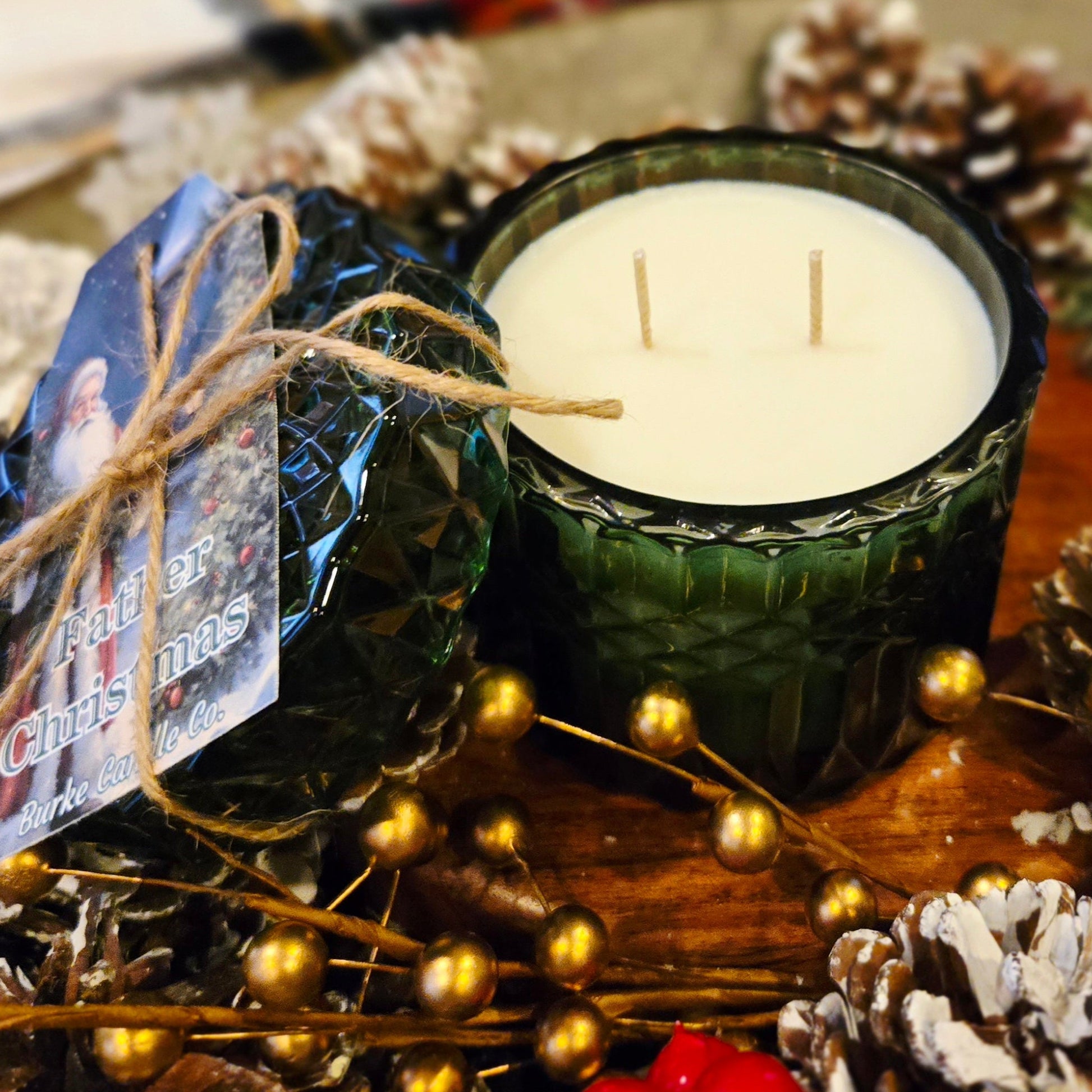 Let the quiet magic of the season unfold with ourFather Christmas candle. A festive blend of fresh evergreens, airy ozone, citrus, red berries, pine, fir, and warm cedar creates a crisp, cozy aroma that feels like stepping into a winter woods at dawn.