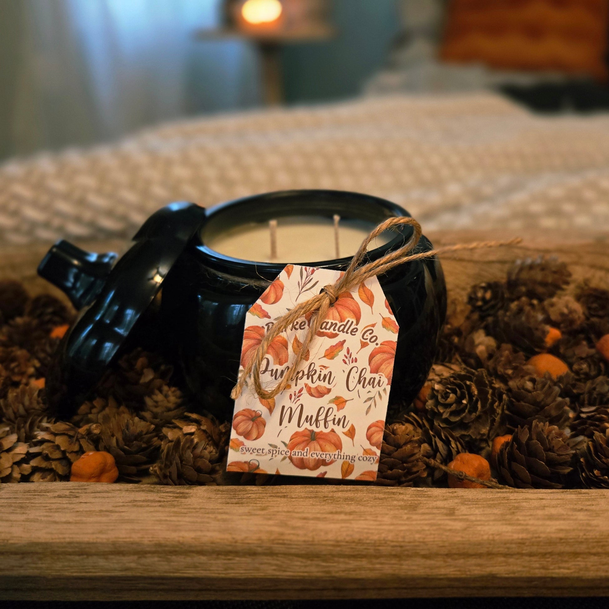 Pumpkin Chai Muffin fills the room with spiced cardamom, crisp apple, and pumpkin, folded into rich brown sugar, vanilla, and caramel. With every flicker, it’s the sweet and spiced comfort of autumn mornings, poured into our charming reusable pumpkin jar.